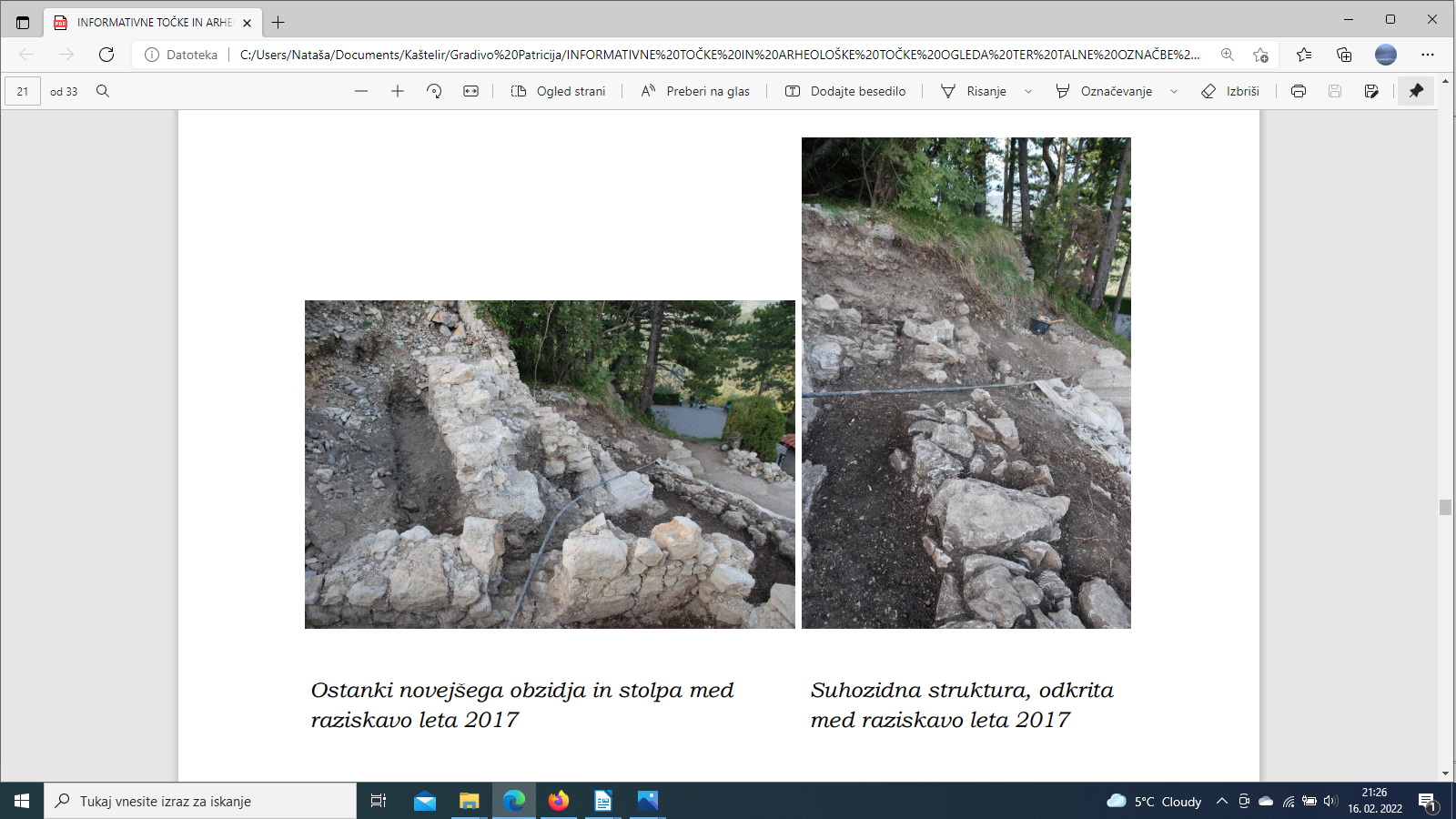 Ostanki starejših struktur v podnožju Severnega stolpa odkriti med arheološkimi raziskavami leta 2017. Foto: Patricija Bratina, Zavod za varstvo kulturne dediščine Slovenije