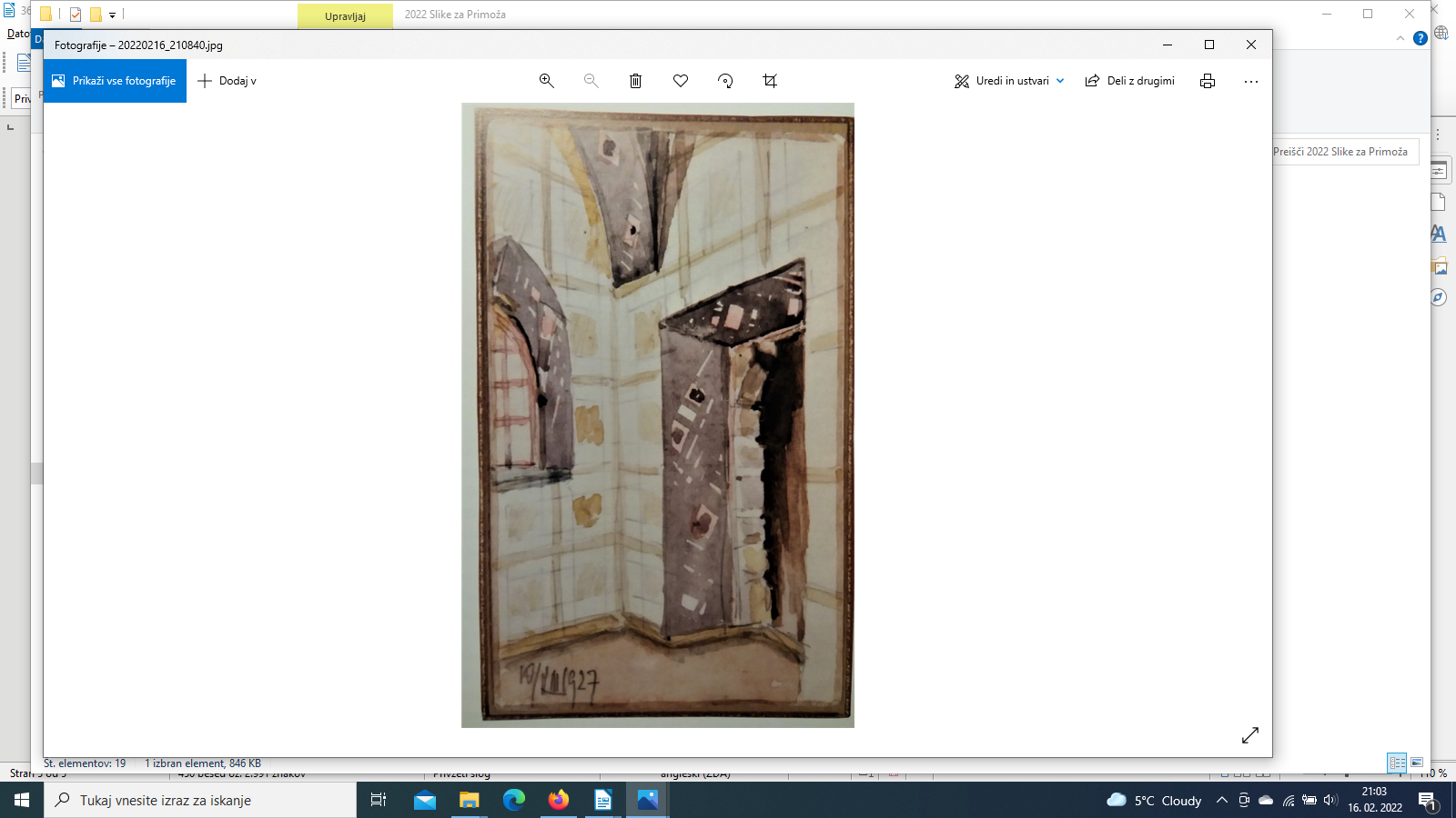 Študija notranjosti Severnega stolpa na akvarelu arhitekta Fabianija iz leta 1927. Vir: Arhiv Ustanove Maks Fabiani, Štanjel
